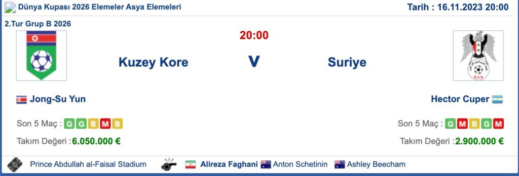 16 Kasım 2023’te, Cidde, Suudi Arabistan’da, Suriye, 2026 Dünya Kupası elemelerinde Kuzey Kore’ye karşı ilk maçına çıktı. Suriye’nin 1-0 galip geldiği maçı izlemek için sadece 4000 taraftar vardı. Ancak maç, başka bir nedenle önemliydi.