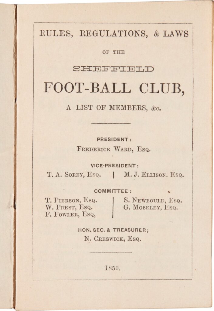 Bir yıl sonra, 1858’de kulüp Sheffield oyun kurallarını ayırt eden ve diğer takımların takip etmesi için bir rehber görevi gören bir dizi kural oluşturdu. Bunlar, bir futbol kulübü tarafından oluşturulan ilk kural setiydi ve hızla yayıldı. Sheffield kuralları, Kuzey İngiltere’de bir süre boyunca oynanan modern oyunun en popüler formu haline geldi.